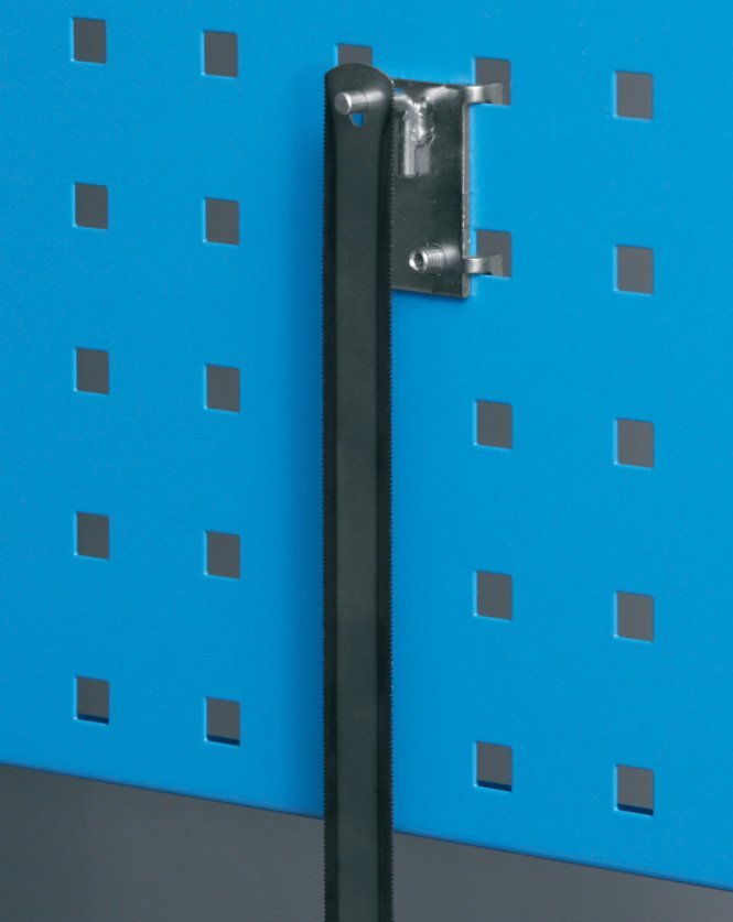 Die Kunststoffhalterungen werden aus stoßfestem ABS Kunststoff hergestellt und sind in den Trägern bzw. Werkzeugrahmen mithilfe von zwei Sicherungen in der gewünschten Position fixiert. Ohne Werkzeug, ohne Schrauben!