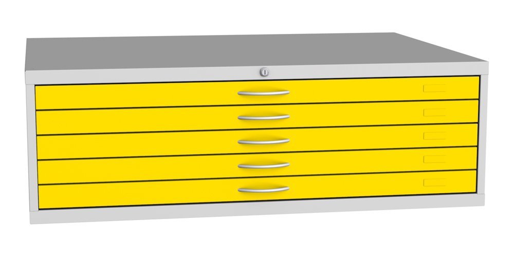 Zeichnungsschrank, B x H x T 986 x 435 x 748 mm. Korpusfarben RAL 7035 Lichtgrau.